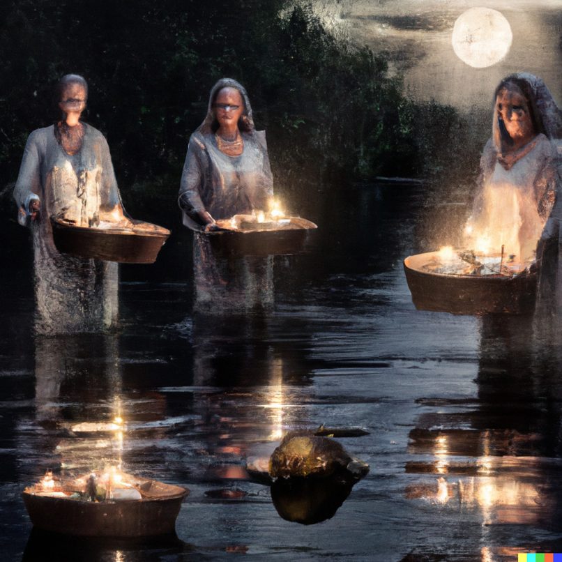 Inspired by the researcher and cultural theorist Astrida Neimanis, we decided to “work with the bodies closest to us.” The Britz canal in Berlin is our local waterway, the Oder river is in our Brandenburg region, the Peene river connects us through companionship, and the Main river connects us through the familiar. These four bodies of water each have distinct characteristics and histories. We approach past human relationships and interactions with these bodies of water to understand the present. Playfully, we create weavings, rituals, costumes, tales, river ghosts, and objects and use technological tools to transfer tangible materiality from the real world to the virtual dimension.