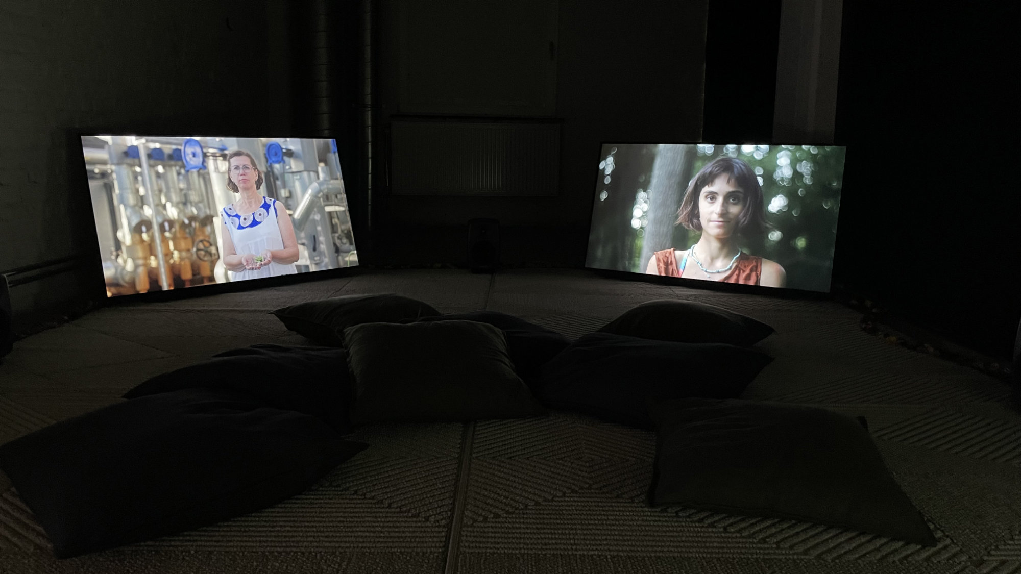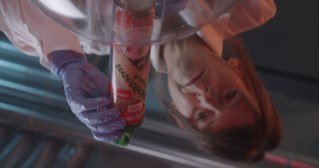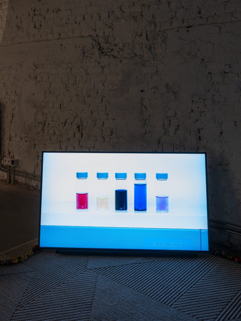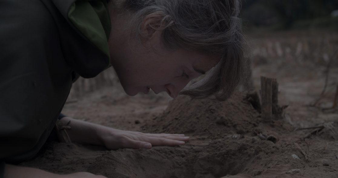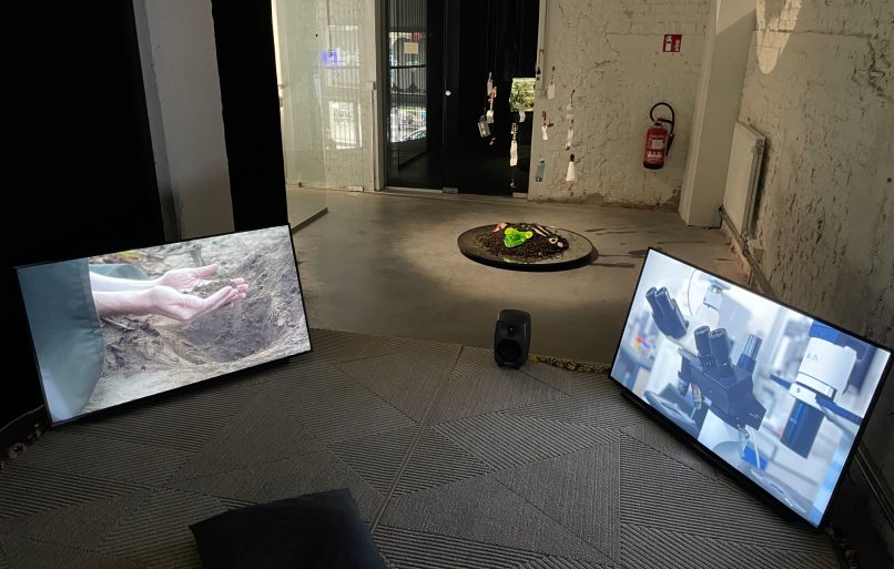 Emerging from a two-year art–science collaboration with the researchers Caterina Cacciatori, Sandra Coecke and Irene Guerrero from the European Commission’s Joint Research Centre (JRC) in Ispra, Italy and Saskia Vermeylen from the Strathclyde University in Glasgow, Scotland, the work transforms scientific methods and policy language into site-based rituals performed by the researchers. Filmed across a harvested cornfield, a laboratory, a pond and a remediation facility the four rituals open up speculative spaces to explore scientific and embodied ways of knowing, inviting multidisciplinary responses beyond technoscientific structures.  In these rituals, methods from dominant scientific practices are woven with spoken text, movement, and symbolic locations and objects.  The work is presented as a four-channel video installation with spatial sound, with each of the four screens representing one of the researchers and their ritual.